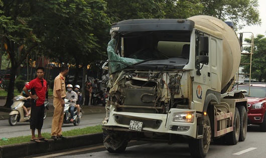 Xe chở bê tông nát đầu vì đâm đuôi xe bus đỗ sai điểm