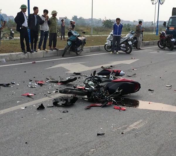 Thông tin ban đầu, vào thời điểm trên, 2 thanh niên đi trên xe máy Honda Winner mang BKS 88G1-301.88 chạy trên trục đường mới đang đi thi công với tốc độ cao thì xảy ra va chạm với xe taxi mang BKS 30E-151.88 của hãng xe Bắc Á chạy chiều ngược lại.