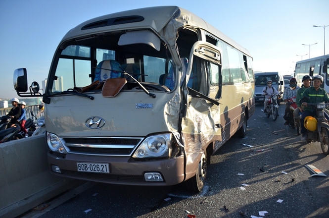 Đến giữa cầu Sài Gòn, xe khách mang BKS 51B - 178.97 bị nổ lốp nên tài xế dừng xe, chờ xe cứu hộ. Không lâu sau, xe khách mang BKS 60B - 026.21 chở theo hàng chục hành khách trong lúc chạy trên cầu bất ngờ đâm vào xe khách mang BKS 51B - 178.97.