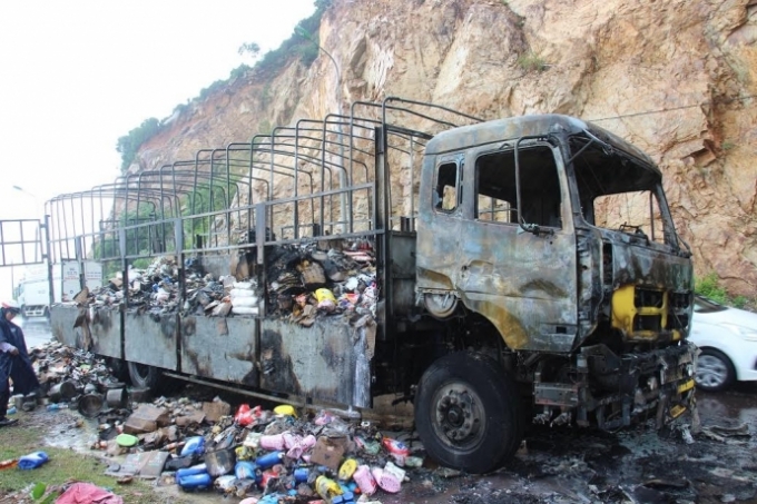 Theo lời tài xế Duy, khi xe đang lên dốc thì bất ngờ nghe tiếng như nổ cầu chì, rồi xịt khói lửa, gió lớn thổi khói lửa vào ngay trước mặt. "Quá bất ngờ, tôi vội tấp xe vào lề nhảy xuống xe, nhờ giúp đỡ. Nhưng ngọn lửa nhanh chóng cháy lan xuống thùng xe, thiêu rụi toàn bộ hàng hóa trên xe. Hóa đơn niêm phong hàng bị cháy hết, nên hiện tại vẫn chưa biết tổng thiệt hại là bao nhiêu” - tài xế Duy hoảng hốt kể.