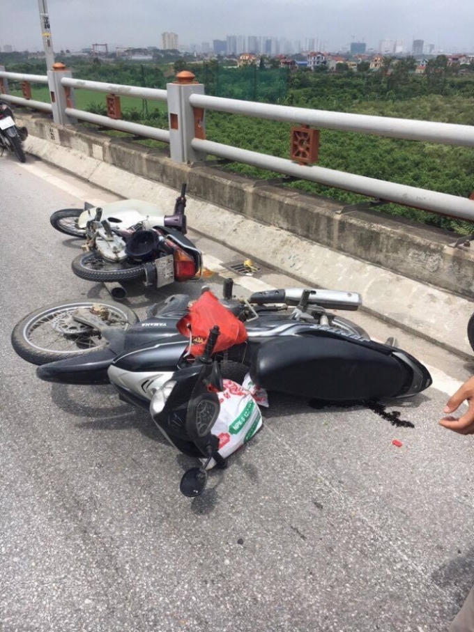 Hậu quả khiến 2 nạn nhân ngã xuống đường, mất nhiều máu, cả 2 phương tiện đều hư hỏng.