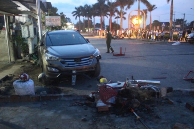 Vụ tai nạn cũng khiến các xe máy và ô tô Huyndai Santa Fe 7 chỗ BKS 74A – 045.92 bị hư hỏng.
