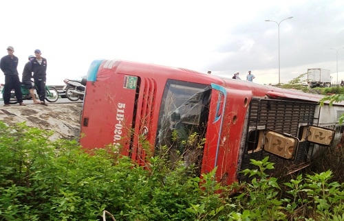 Khi đến địa điểm kể trên, lái xe không điều khiển được xe khách, khiến xe mất lái rồi lật nghiêng xuống phần ruộng bên lề đường quốc lộ 1A. Rất may lúc này, trên xe khách có 3 hành khách và 4 người phụ của nhà xe.