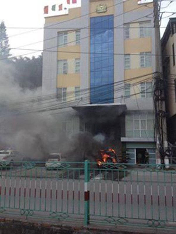 Xế hộp bốc cháy nghi ngút trước cửa trụ sở công an