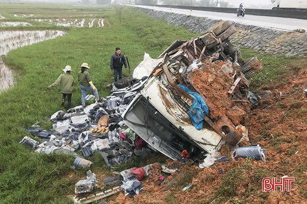 Theo Báo Hà Tĩnh, vào Lúc 3h ngày 18/11, xe tải mang BKS 38C – 127.56 do tài xế Phan Xuân Quỳnh (SN 1989, trú xã Hòa Lạc, huyện Đức Thọ) lưu thông trên QL1 theo hướng Bắc – Nam. Khi di chuyển tới Km 535+300, đoạn qua thôn Trung Sơn, xã Cẩm Sơn, huyện Cẩm Xuyên, xe bất ngờ mất lái lao xuống lật nghiêng bên đường.