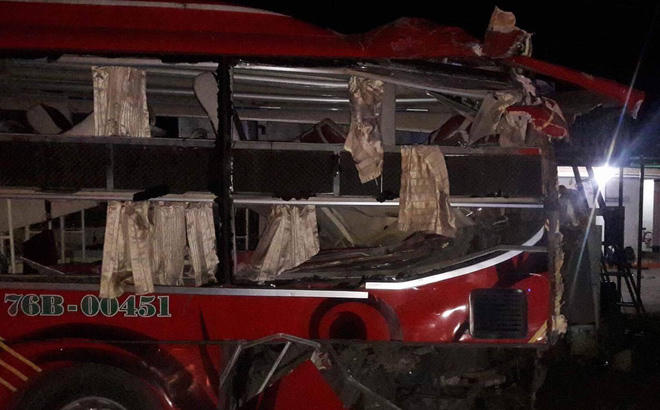 Thông tin ban đầu, khoảng 0h15 ngày 19/7, xe khách giường nằm BKS 76B - 00451 của nhà xe Kim Thành lưu thông trên quốc lộ 1A, hướng Quãng Ngãi đi Bình Dương.