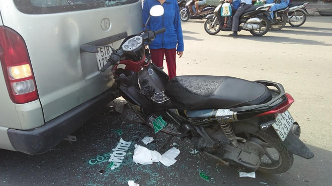 Khi đến giao lộ Kinh Dương Vương-đường số 10 (quận 6, TP Hồ Chí Minh), xe tay ga đã tông thẳng vào đuôi xe du lịch BKS 51B-123.37 đang lưu thông phía trước.