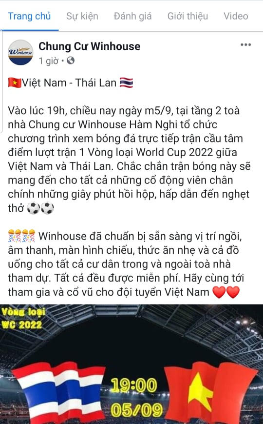 Biết được tình hình khó khăn do mưa lũ, nhiều công ty, tòa nhà cao tầng của thành phố Hà Tĩnh đã mở cửa và trang bị âm thanh, ánh sáng nhằm phục vụ miễn phí cho bà con trước trận đấu tối nay. Chung cư Winhouse Hàm Nghi ngoài việc bố trí chỗ ngồi ấm cúng, màn hình chiếu... còn phục vụ cả đồ ăn nhẹ, thức uống hoàn toàn miễn phí cho đông đảo người dân có nhu cầu xem trận đấu giữa đội tuyển Việt Nam gặp Thái Lan.