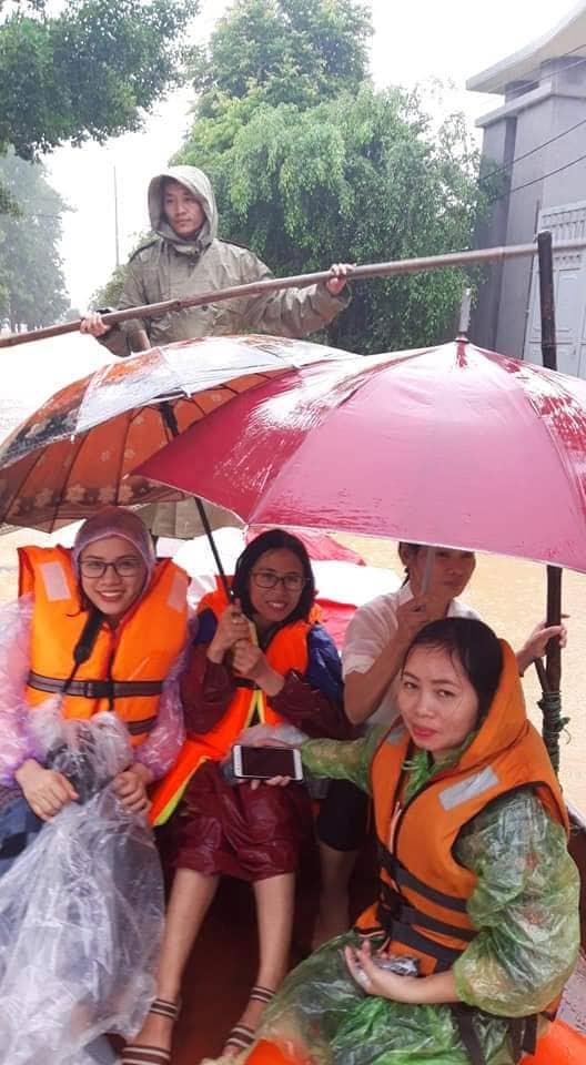 Rất đông phóng viên, nhà báo phải mượn thuyền của người dân để tác nghiệp trong mưa lũ.
