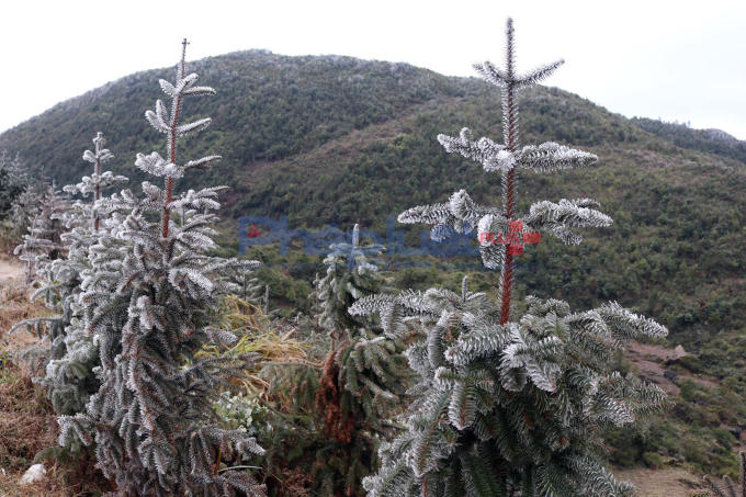 Băng giá phủ kín ngọn cây Sa Mộc.