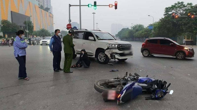 Vụ việc xảy ra vào khoảng 6h30 sáng cùng ngày (16/11), tại ngã tư gần cầu vượt Trần Duy Hưng - Nguyễn Chánh (thuộc địa bàn quận Cầu Giấy, Hà Nội). Người đi xe máy Exciter BKS 24B2-190.xx đã va chạm với ô tô Land Cruise BKS 30G-026.xx.
