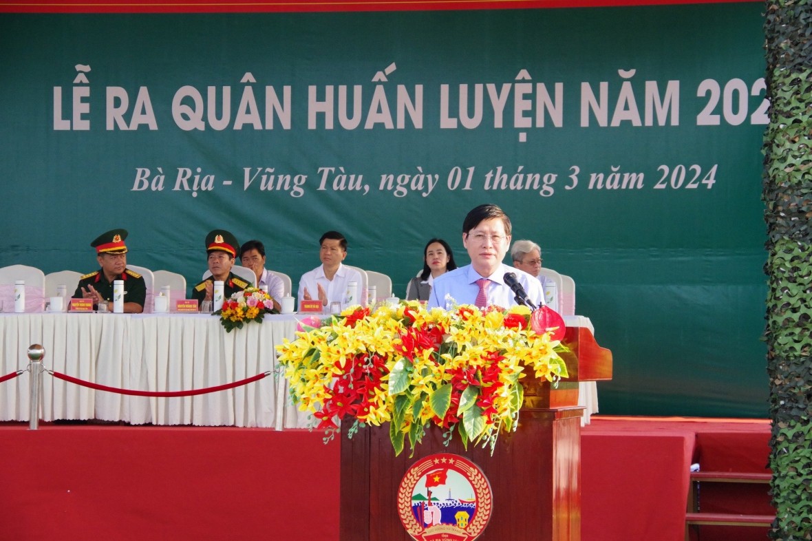 | Ông Lê Ngọc Khánh, Phó Chủ tịch UBND tỉnh Bà Rịa - Vũng Tàu phát biểu tại buổi lễ Lễ ra quân huấn luyện năm 2024. |