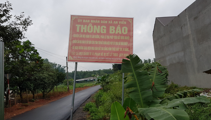 Để ngăn chặn tình trạng này, chính quyền xã An Viễn đã tăng cường công tác tuyên truyền, cắm nhiều biển Thông báo nghiêm cấm việc làm đường, phân lô trái phép trên đất nông nghiệp, đề nghị không giao dịch mua bán đất đai bằng hình thức giấy tay, vi bằng.