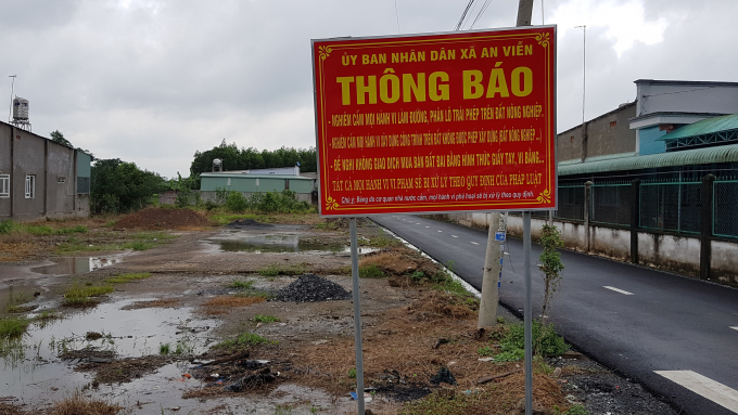 Nhiều nơi có dấu hiệu phân lô, bán nền trái phép được chính quyền địa phương cắm biển cảnh báo.
