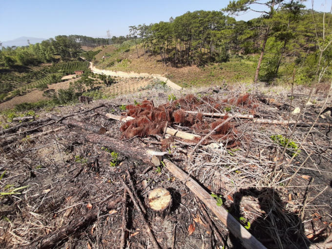 Hiện trường vụ phá rừng tháng 2/2020 ở xã Phi Liêng, huyện Đam Rông.