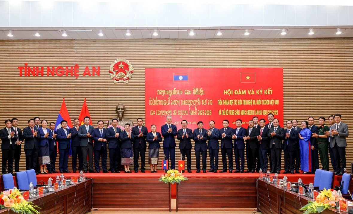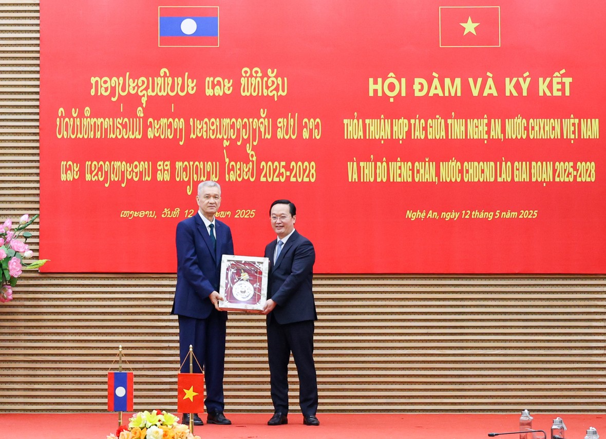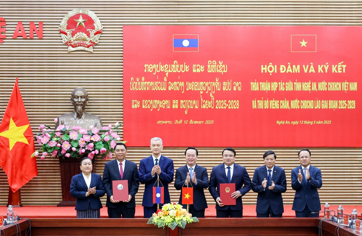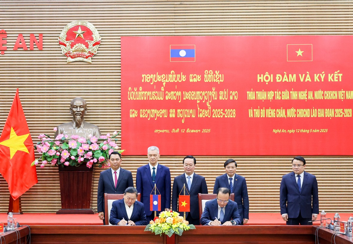 Ngày 12/5, tại thành phố Vinh, Lãnh đạo tỉnh Nghệ An, nước CHXHCN Việt Nam và Đoàn đại biểu cấp cao thủ đô Viêng Chăn, nước Cộng hoà DCND Lào tổ chức Hội đàm và ký kết thoả thuận hợp tác giữa hai tỉnh giai đoạn 2025 - 2028.