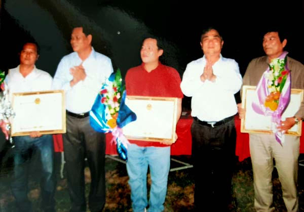 | Tối 31/10/2016, lãnh đạo tỉnh Phú Yên trao Bằng khen cho các tập thể “hoàn thành xuất sắc nhiệm vụ đẩy nhanh tiến độ thi công dự án”, trong đó có Cty TNHH New City Việt Nam (đứng giữa), đơn vị “chủ lực” làm ảnh hưởng tiêu cực đến diện tích rừng. Ảnh: PV |