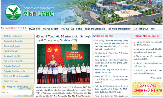 | Website cổng thông tin điện tử Vĩnh Long. (Nguồn: vinhlong.gov.vn). |