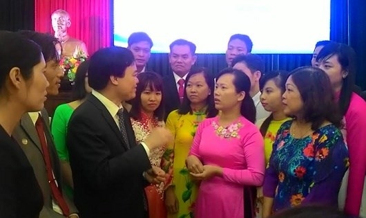 | Các thầy cô trong buổi tuyên dương, gặp mặt tại Hà Nội với Bộ trưởng Bộ Giáo dục và Đào tạo. |