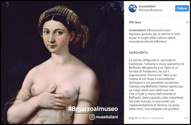 Hướng đến ngày Quốc tế Phụ nữ, trang mạng xã hội “museitaliani” chuyên cập nhật các thông tin chính thức của các viện bảo tàng Ý đã tập trung giới thiệu những tác phẩm nghệ thuật khắc họa phụ nữ, mỗi ngày, trang mạng xã hội này lại đăng tải hình ảnh một tác phẩm nghệ thuật với những thông tin chi tiết giới thiệu về tác phẩm khắc họa phụ nữ đó.