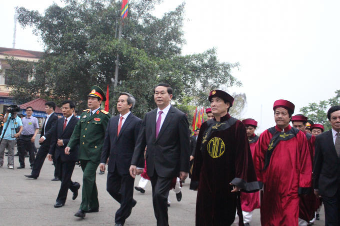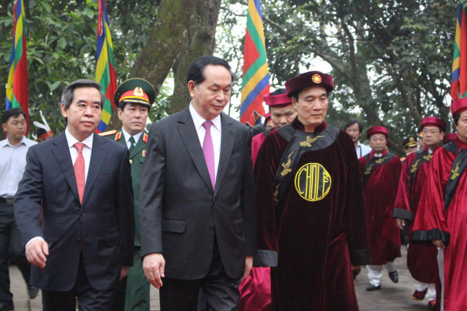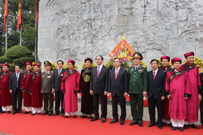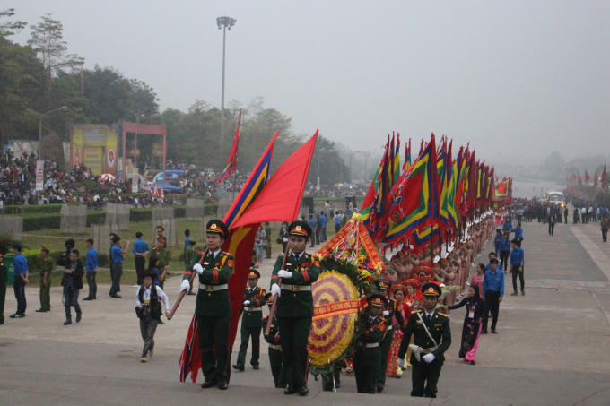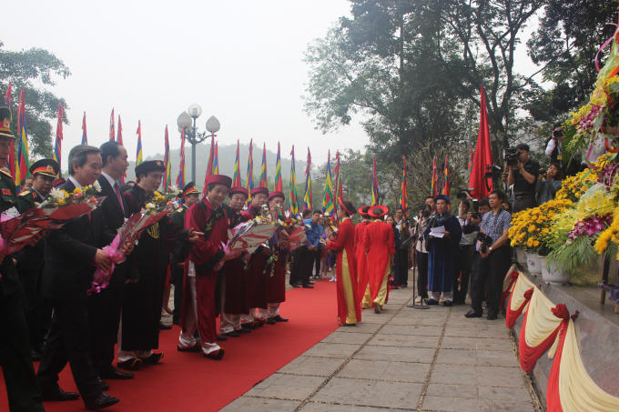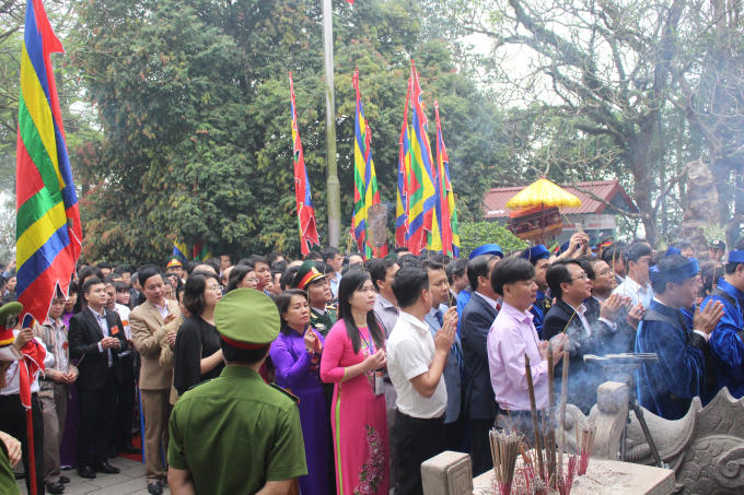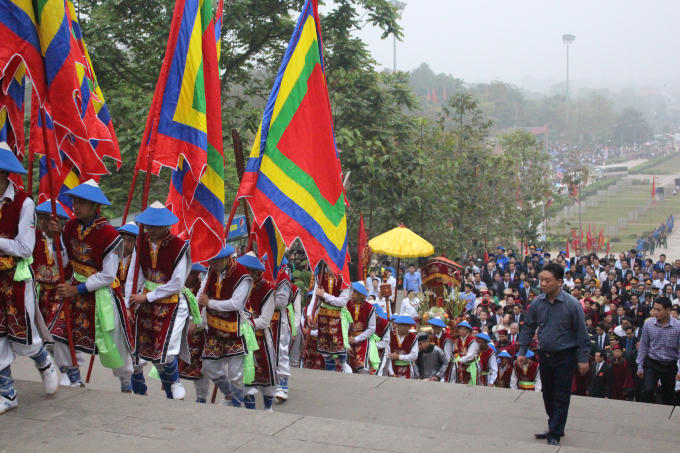 Sáng 6/4 (10/3 Âm lịch), tại Điện Kính Thiên trên đỉnh núi Nghĩa Lĩnh diễn ra buổi lễ dâng hương thành kính của Đảng, Nhà nước và cả dân tộc Việt.
