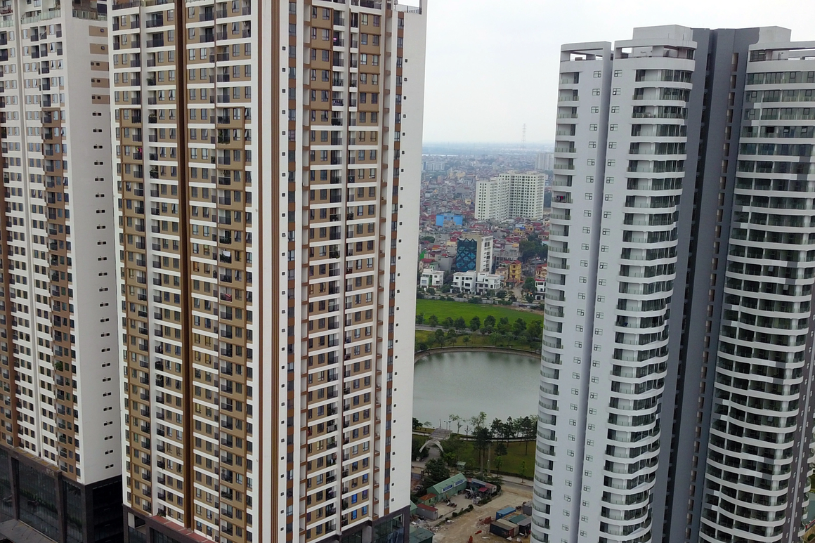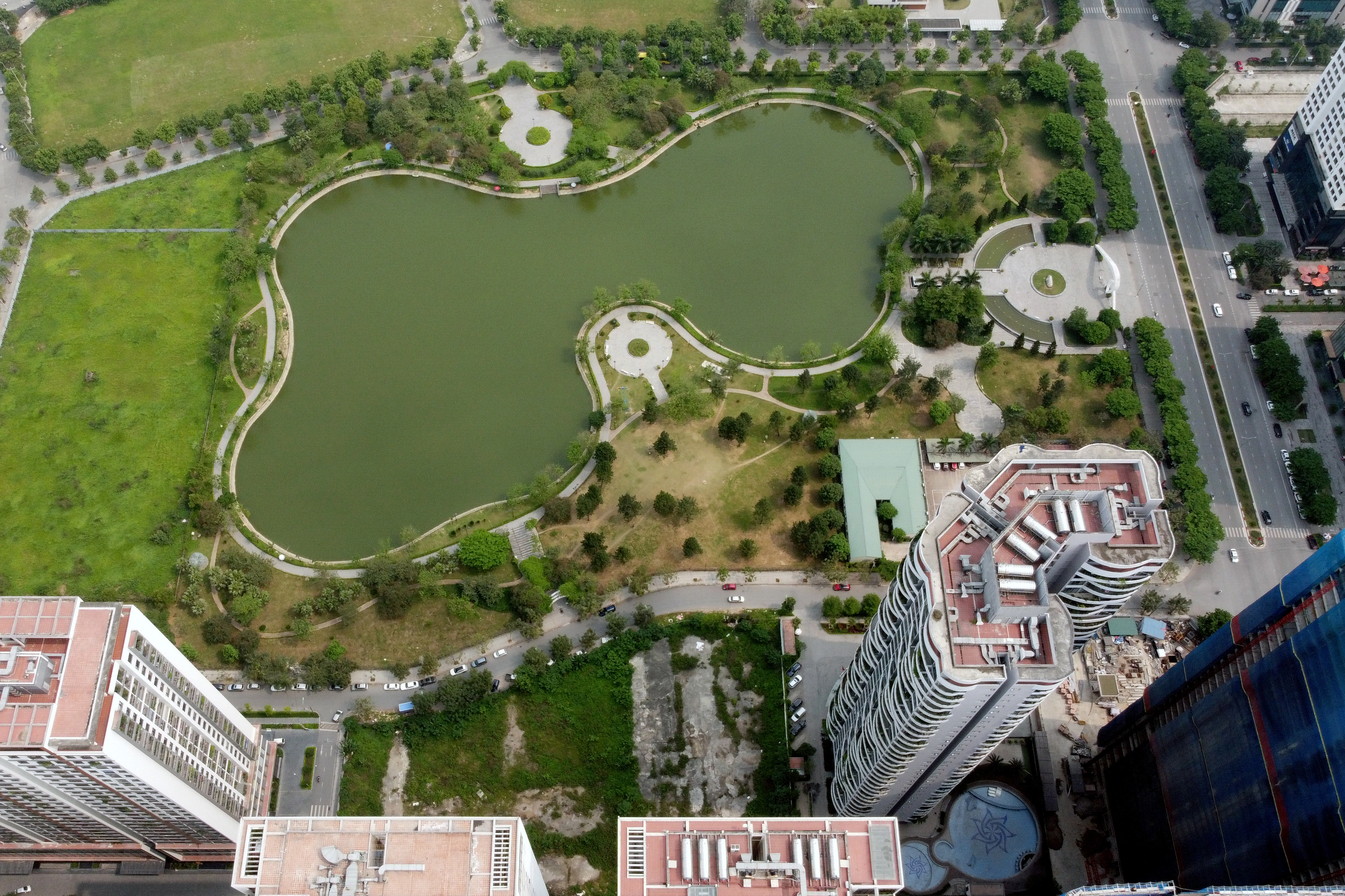 Mật độ xây dựng các tòa chung cư ở khu đô thị này cũng khá dày đặc.