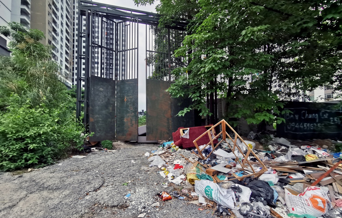 Bên cạnh cao ốc đã được xây dựng, không ít ô đất khác đang được quây tôn, bị bỏ hoang nhiều năm, thành nơi đổ rác.