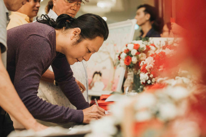 Trong không gian trang trọng và lãng mạn, cháu gái nghệ sĩ NSƯT Vũ Linh và chồng trao cho nhau những nụ hôn ngọt ngào trước sự chúc phúc của gia đình và bạn bè nghệ sĩ.