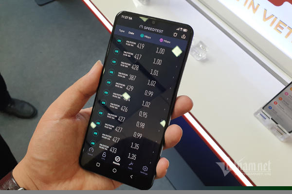 Tốc độ 5G thử nghiệm tại Việt Nam đạt mốc 400 Mbps. Đáng chú ý khi thử nghiệm này dùng cả thiết bị đầu cuối 5G (Vsmart Aris) và thiết bị mạng 5G (Viettel) do các doanh nghiệp Việt Nam tự sản xuất. Ảnh: Trọng Đạt
