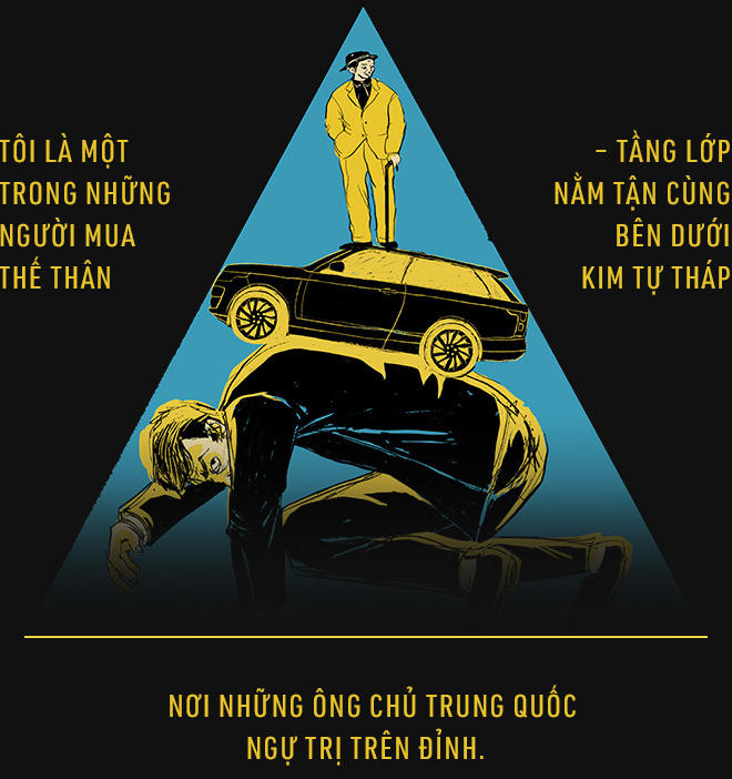 Giờ, có lẽ bạn đã hiểu số xe tôi kể trên được chuyển đi đâu. Tôi đứng tên mua chúng cho một công ty tại San Diego, tiền đương nhiên cũng do họ cung cấp. Tôi là một trong những người mua thế thân – tầng lớp nằm tận cùng bên dưới kim tự tháp nơi những ông chủ Trung Quốc ngự trị trên đỉnh.