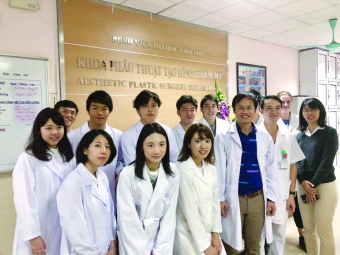 | Bác sỹ Hoàng Hồng hướng dẫn các sinh viên y khoa Mỹ, Nhật Bản, Australia học tại khoa Phẫu thuật Tạo hình Thẩm mỹ, bệnh viện Đại học Y Hà Nội. |