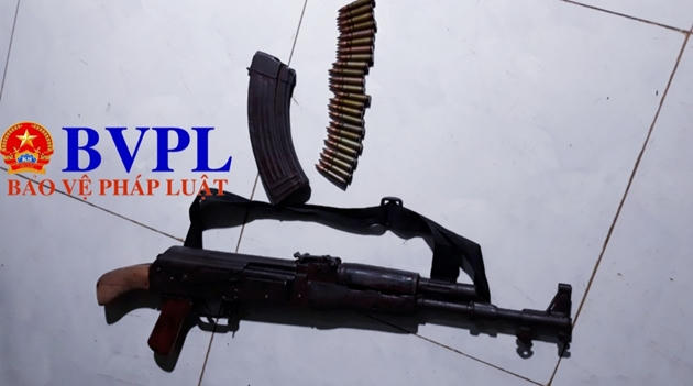 Khẩu súng AK đối tượng Tùng dùng để bắn chị H. và tự bắn mình để tự sát nhưng không chết và được mọi người đưa đi cấp cứu sau đó.