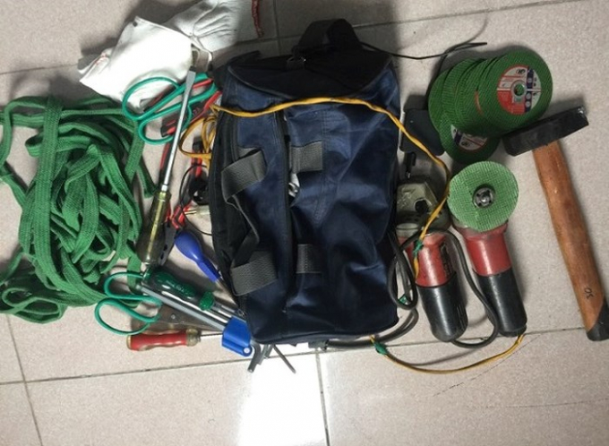 Tại cơ quan công an, đối tượng khai nhận toàn bộ hành vi phạm tội của mình. Theo đó, đối tượng chuẩn bị 1 chiếc balo, bên trong có kìm, kéo, máy cắt, dây dù, bao tay... để đi trộm cắp tài sản.