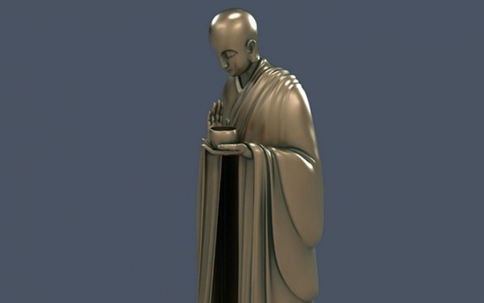 Ngài không ngồi mà luôn ở thế đứng, như để sẵn sàng đi xuống cõi âm dâng “bát cơm đầy vạn ước mong” tỏ lòng hiếu kính mẹ. Mẹ của Tôn giả Mục Kiền Liên là bà Thanh Đề, lúc còn sống bà chẳng những không tin Tam bảo lại còn hủy báng, phá hoại Tam bảo, nói Tam bảo không tốt, không đáng để tin. Cho nên sau khi chết bà liền bị đọa xuống địa ngục.