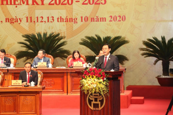 Phát biểu khai mạc Đại hội, Ủy viên Bộ Chính trị, Bí thư Thành ủy Hà Nội khóa XVI Vương Đình Huệ nhấn mạnh, nhiệm kỳ qua, bên cạnh những thuận lợi cơ bản, TP cũng phải đối mặt với nhiều khó khăn, thách thức.