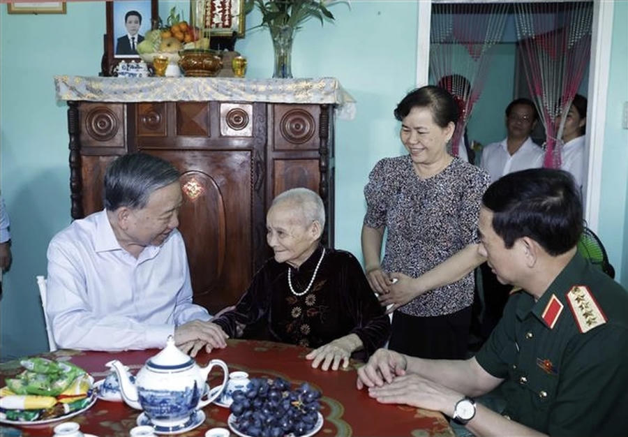 Tại đây, Tổng Bí thư, Chủ tịch nước bày tỏ lòng biết ơn sâu sắc trước những hy sinh của gia đình Mẹ cho độc lập, tự do của Tổ quốc; chúc Mẹ sống vui, sống khỏe, tiếp tục là điểm tựa tinh thần và tấm gương trong cộng đồng.