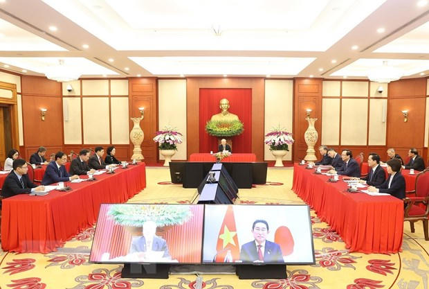 Chiều 9/2, tại Trụ sở Trung ương Đảng, Tổng Bí thư Nguyễn Phú Trọng đã hội đàm trực tuyến cấp cao với Chủ tịch Đảng Dân chủ Tự do, Thủ tướng Nhật Bản Kishida Fumio.