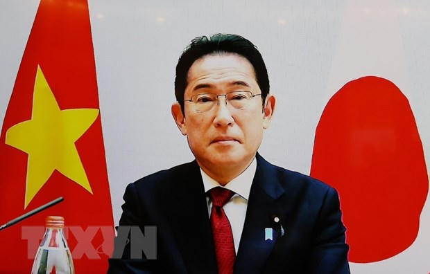 Chủ tịch Đảng Dân chủ Tự do Nhật Bản (LDP), Thủ tướng Nhật Bản Kishida Fumio điện đàm với Tổng Bí thư Nguyễn Phú Trọng. (Ảnh: Trí Dũng/TTXVN)