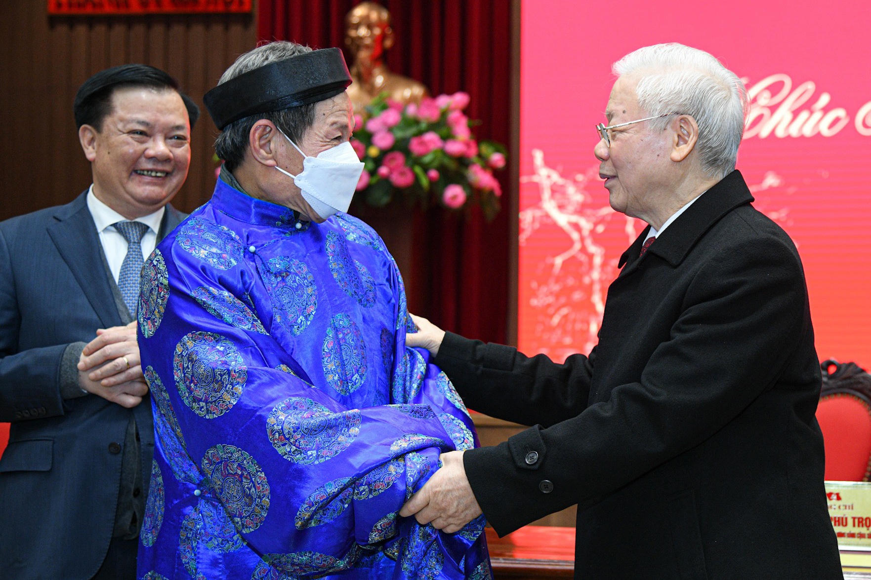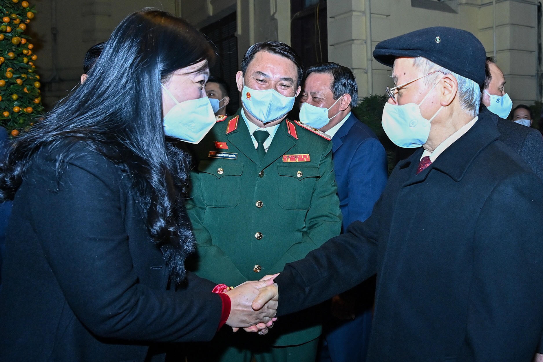 Tổng Bí thư Nguyễn Phú Trọng cũng đã ân cần thăm hỏi sức khỏe đại diện người cao tuổi tới dự trong buổi gặp mặt đêm giao thừa.