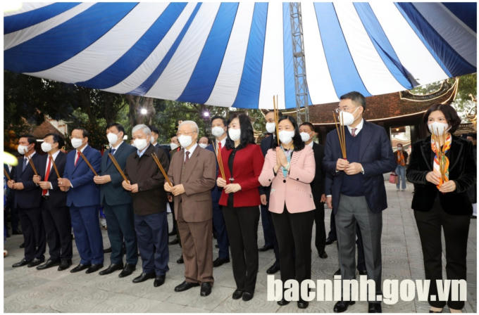 Sáng 24/1 (tức ngày 22 tháng chạp năm Tân Sửu), Tổng Bí thư Nguyễn Phú Trọng về dâng hương tại di tích Quốc gia đặc biệt Đền Đô, TP Từ Sơn.