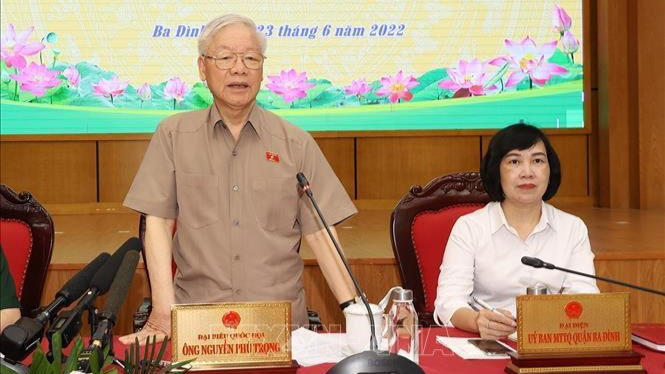 Sáng 23/6, Tổng Bí thư Nguyễn Phú Trọng cùng các đại biểu Quốc hội thuộc Đơn vị bầu cử số 1 TP. Hà Nội, tiếp xúc cử tri các quận: Đống Đa, Ba Đình, Hai Bà Trưng.