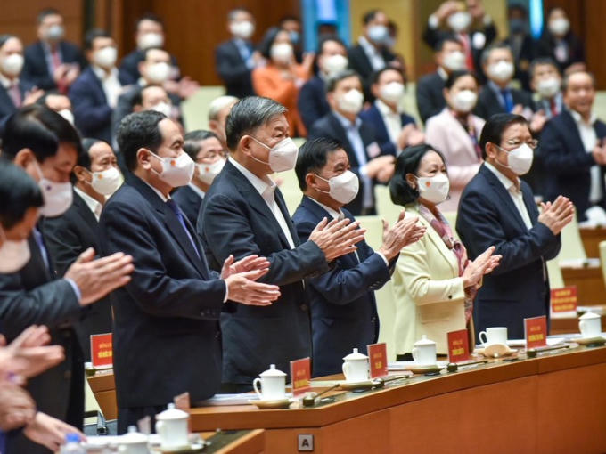 Tổng Bí thư Nguyễn Phú Trọng, Chủ tịch nước Nguyễn Xuân Phúc, Thủ tướng Chính phủ Phạm Minh Chính, Thường trực Ban Bí thư Võ Văn Thưởng đến dự Hội nghị. Ảnh: VGP