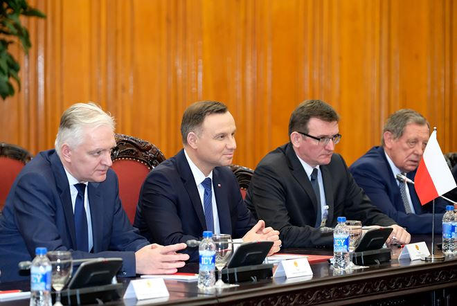 “Hôm nay, Ngài Thủ tướng có hỏi tôi cảm thấy Việt Nam thế nào thì tôi xin trả lời là tôi thấy Việt Nam rất tuyệt vời”, Tổng thống Ba Lan chia sẻ và cho biết, ông rất quan tâm đến hợp tác trong lĩnh vực kinh tế. Bên cạnh đó, nhiều lĩnh vực khác cũng có tiềm năng hợp tác lớn như du lịch. Tổng thống Ba Lan mong muốn tăng số lượng du khách Ba Lan đến Việt Nam với hy vọng hai bên có thể mở đường bay thẳng từ Hà Nội tới Warszawa. Ba Lan cũng mong muốn cân bằng quan hệ thương mại với Việt Nam khi hiện nay, chủ yếu Việt Nam xuất siêu sang Ba Lan.