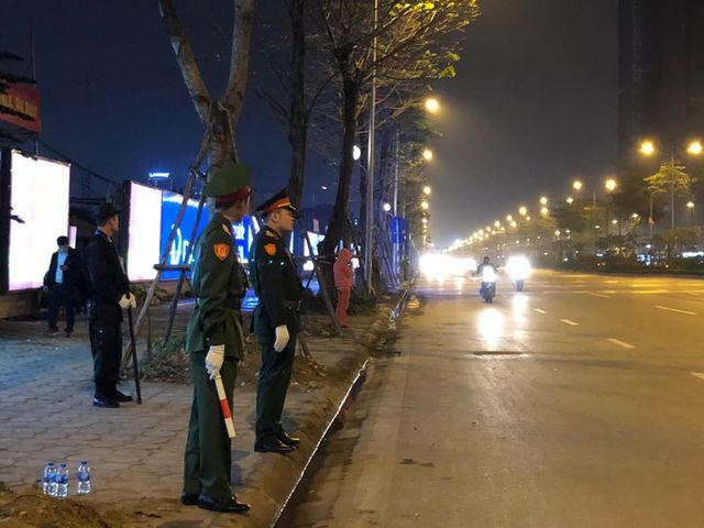 20h, Tại đường Võ Chí Công, tuyến đường lộ trình Tổng thống Trump đi qua, lực lượng an ninh, quân đội đã được triển khai tại đây. Các lối cắt ngang đã được rào kín để đảm bảo tuyệt đối cho đoàn xe ưu tiên bảo vệ Tổng thống. Một số người dân đã ra đứng bên Lê đường để chờ tận mắt xem đoàn của Tổng thống đi qua.