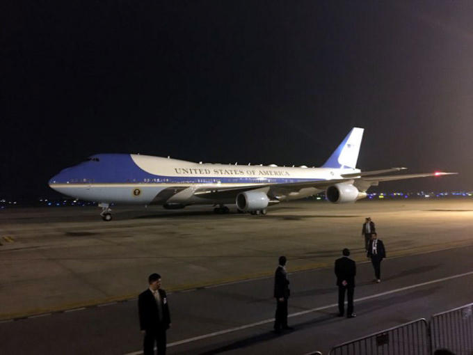 20h54 chiếc Không lực Một chở Tổng thống Mỹ đã hạ cánh xuống sân bay Nội Bài.