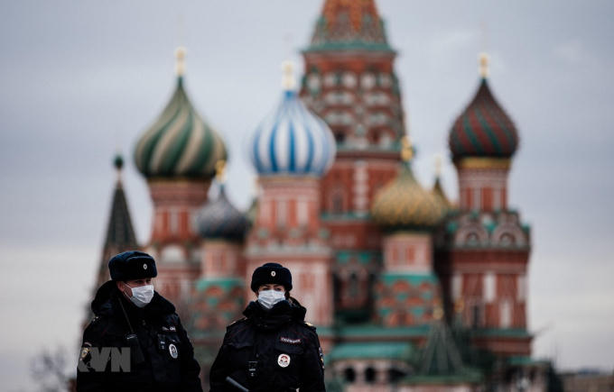 Cảnh sát tuần tra trên Quảng trường Đỏ ở thủ đô Moskva, Nga, ngày 30/3/2020. (Nguồn: AFP/TTXVN)