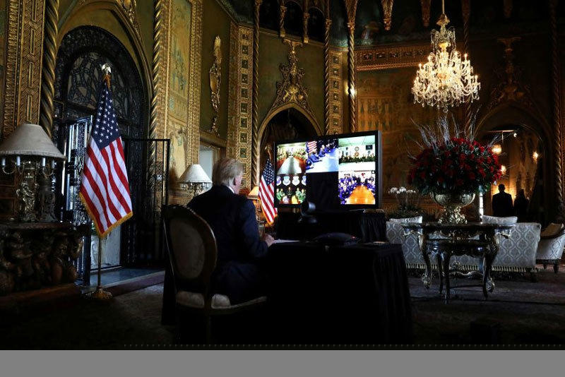 Tổng thống Trump làm việc tại Mar-a-Lago. Ảnh: Reuters