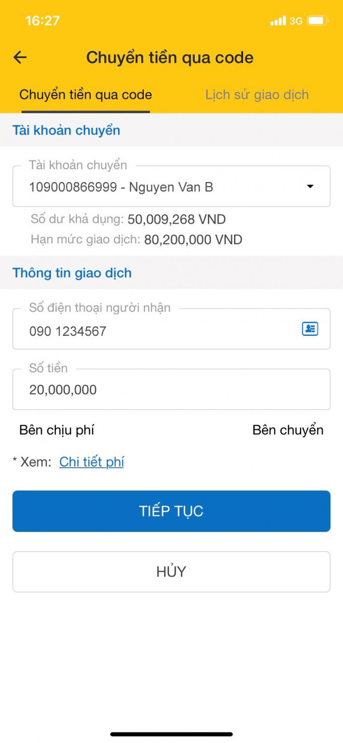 Mã code sẽ có hiệu lực trong 24h kể từ thời điểm hoàn tất lệnh chuyển tiền. Sau 24h, nếu người nhận không rút tiền, số tiền sẽ được hoàn lại tài khoản của người gửi. Tính năng chuyển tiền qua code vô cùng an toàn cho khách hàng nếu không may nhập sai số điện thoại người nhận thì chủ số điện thoại cũng không thể rút tiền được khi không có mã code của người gửi.
