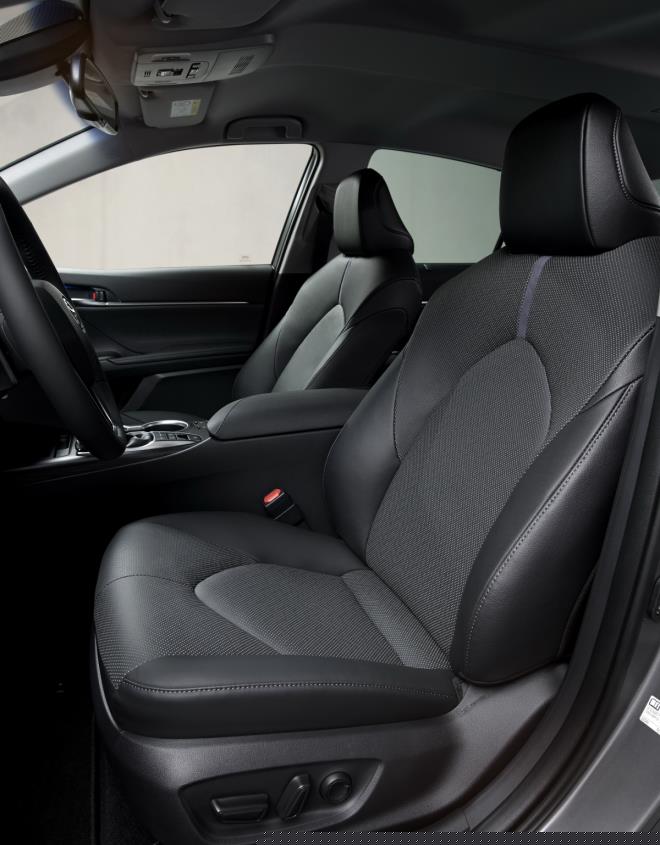 Khách hàng của chiếc Camry Hybird 2021 tại châu Âu cũng được cung cấp 2 tùy chọn ghế bọc da cao cấp mới: Màu be hoặc đen. Ghế bọc da mới với các lỗ đục hoa văn xương cá để tạo sự thông thoáng cho ghế. Ghế ngồi bọc da màu đen với vải xen kẽ cũng là một tùy chọn mới trên Camry Hybrid 2021, bảng điều khiển có thể được hoàn thiện với gỗ và các họa tiết đường viền titan.