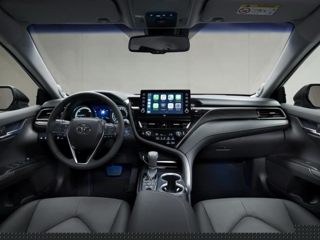 Chiếc Camry Hybrid 2021 còn được trang bị màn hình cảm ứng thông tin giải trí 9 inch nổi mới giờ được đặt ở vị trí cao hơn trên bảng điều khiển để cải thiện khả năng sử dụng. Cùng với đó, hệ thống điều khiển mới có những nút bấm vật lý và nút xoay để sử dụng dễ dàng hơn trong mọi điều kiện lái. Đi cùng là phần mềm nhanh và phản hồi màn hình tốt hơn. Xe cũng được trang bị hệ thống kết nối Apple CarPlay và Android Auto làm tiêu chuẩn.